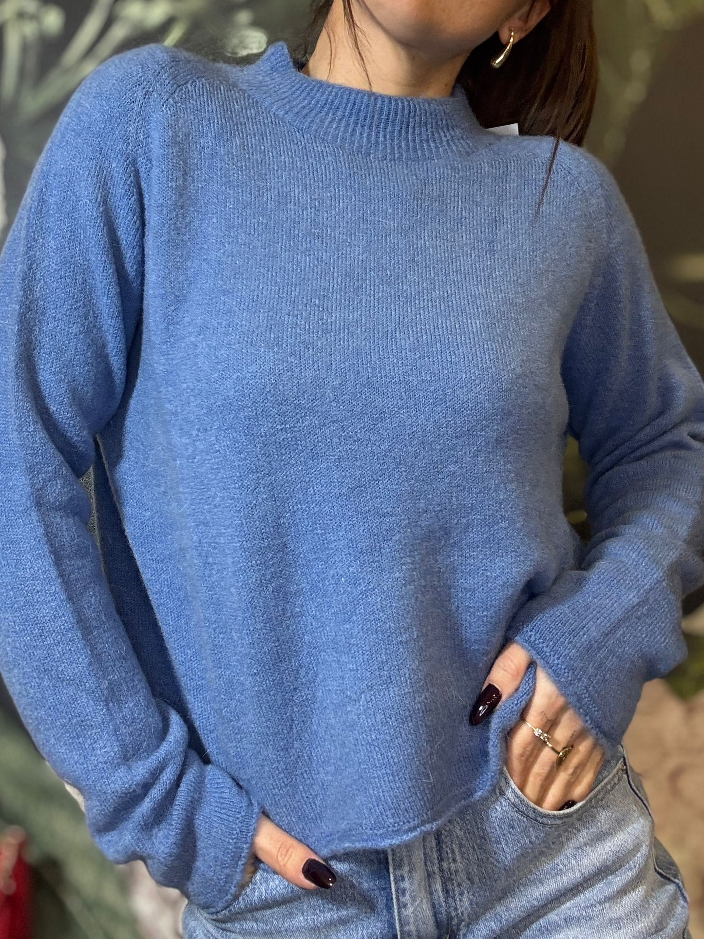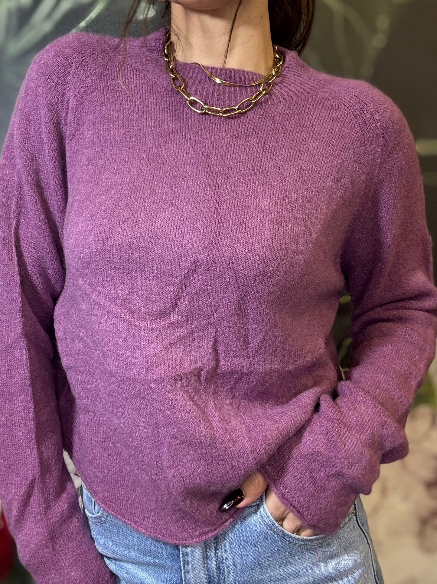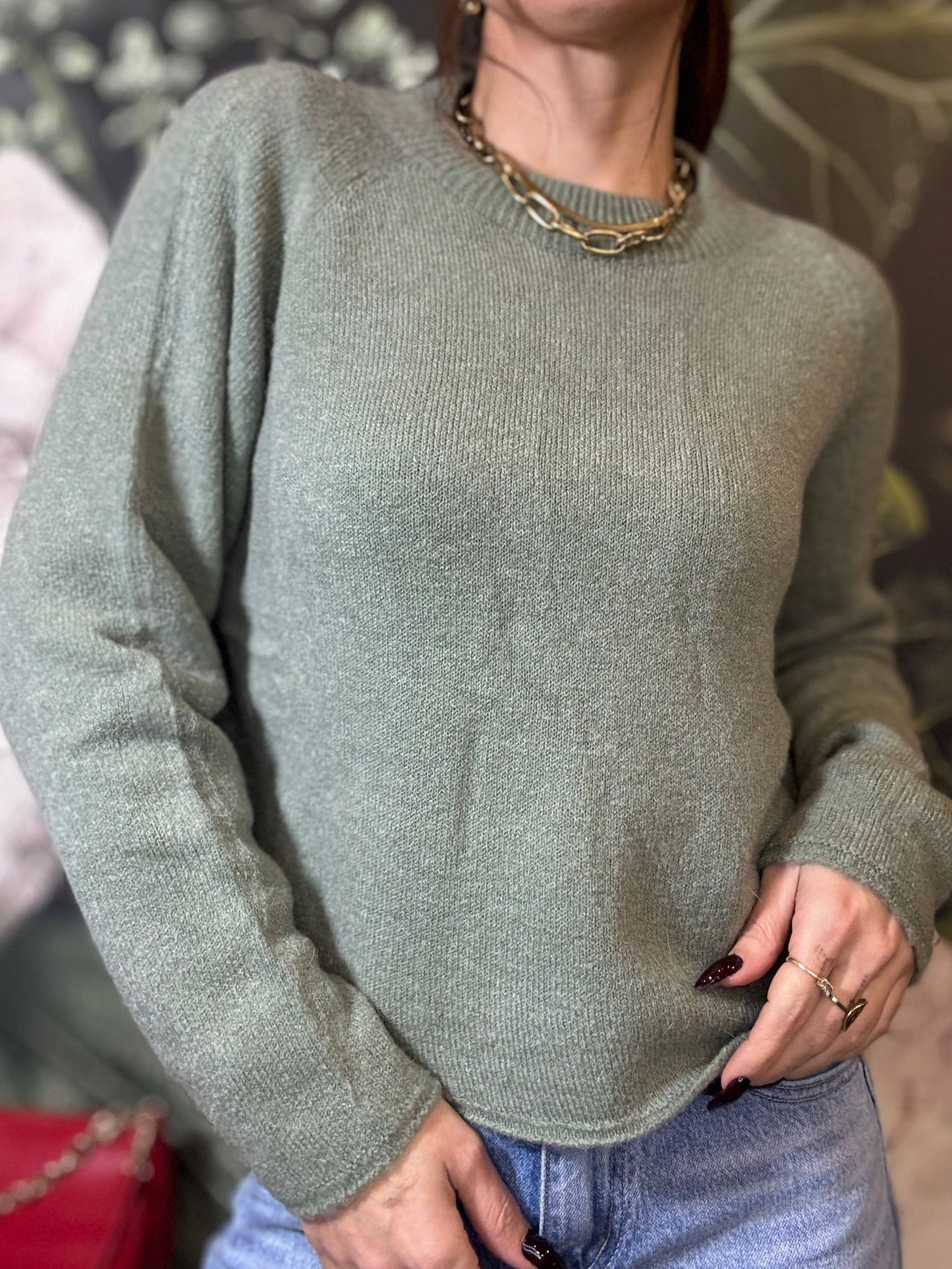 Caratteristiche: Maglioncino misto lana , con scollo tondo , manica a guanto , regular fit.