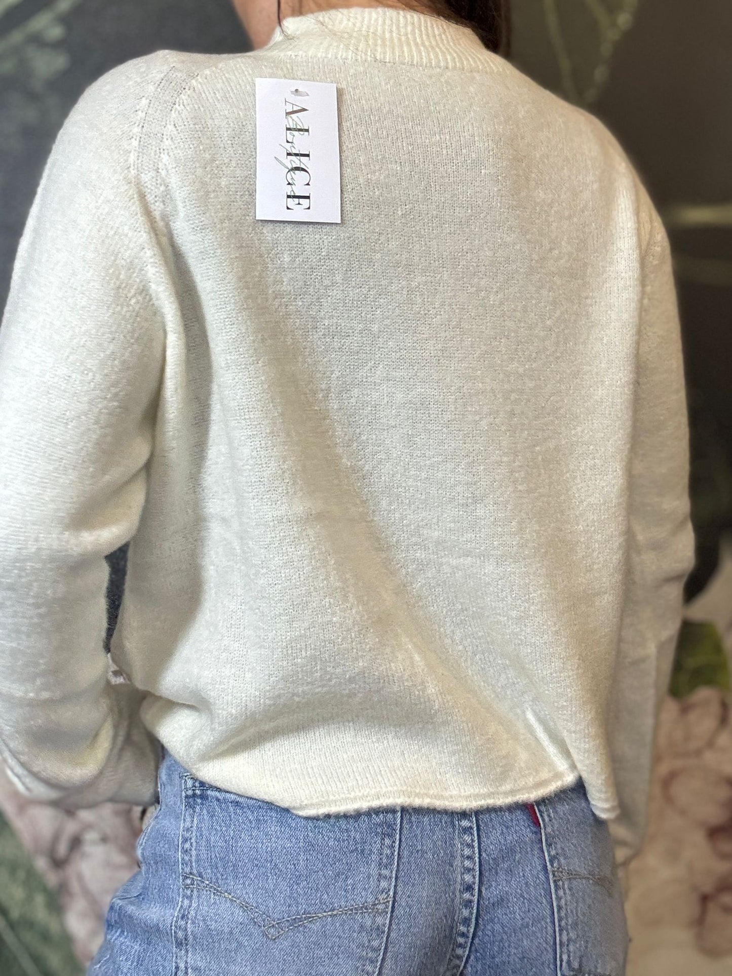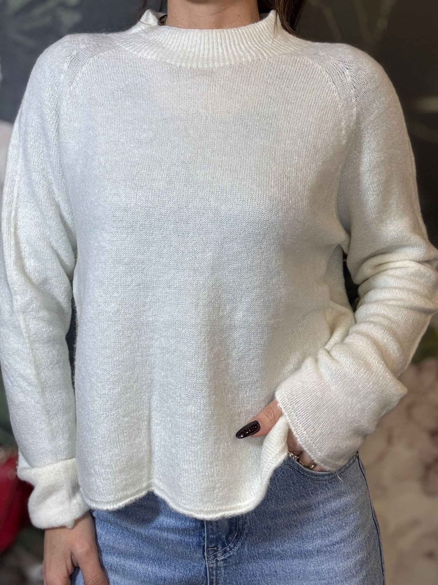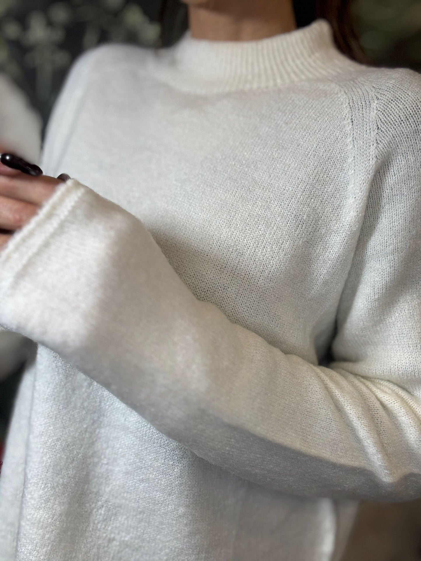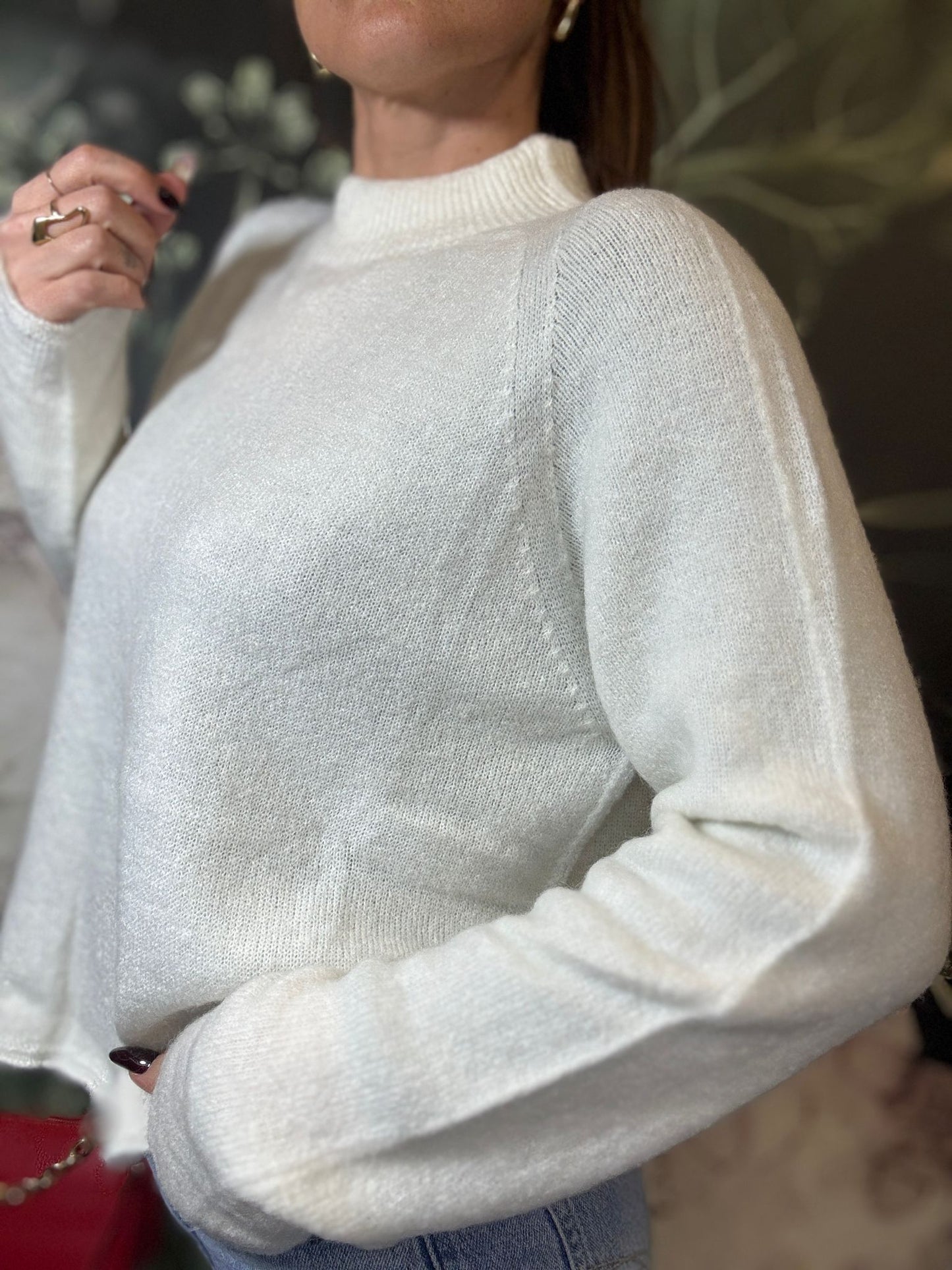 Caratteristiche: Maglioncino misto lana , con scollo tondo , manica a guanto , regular fit.