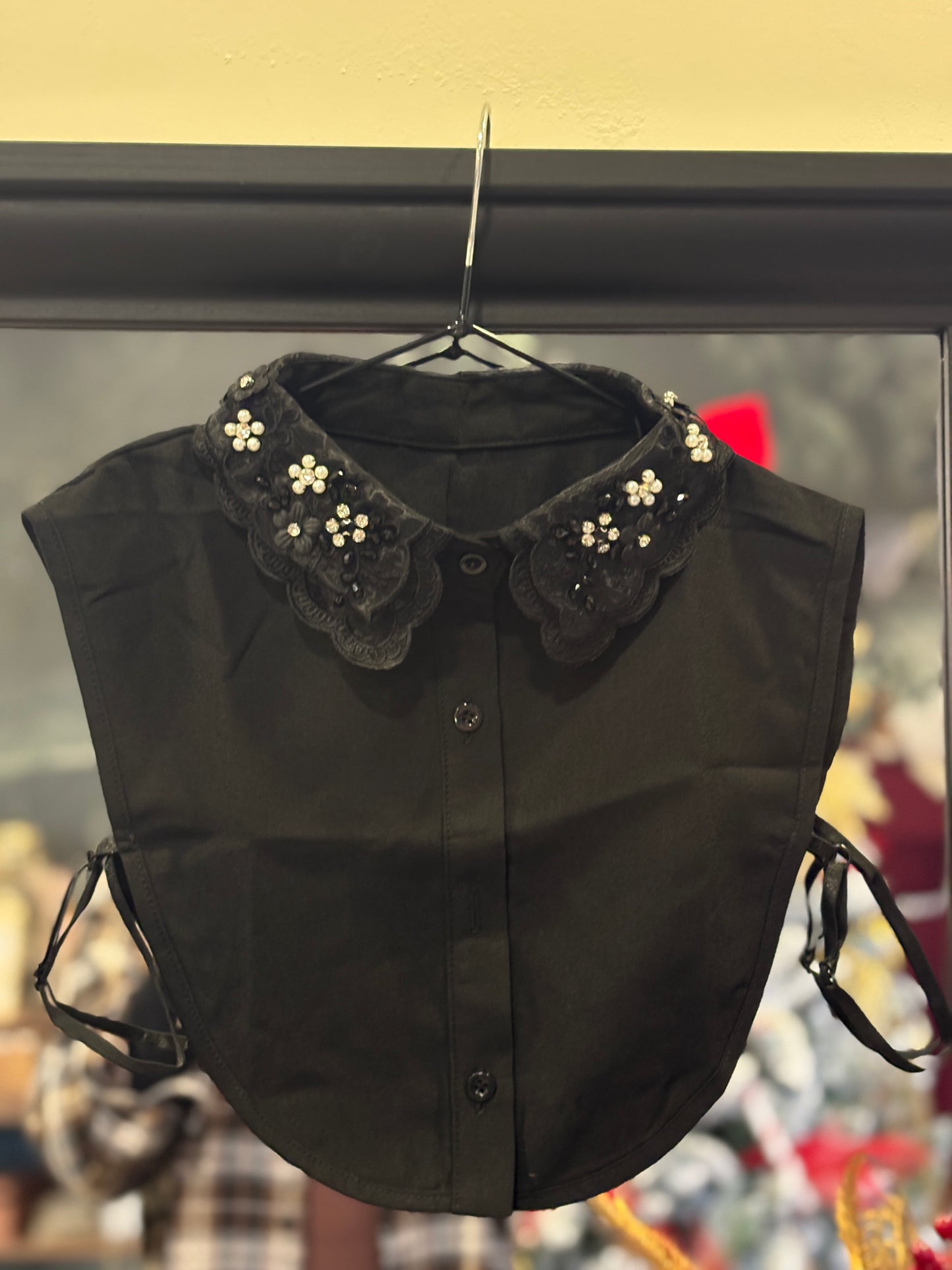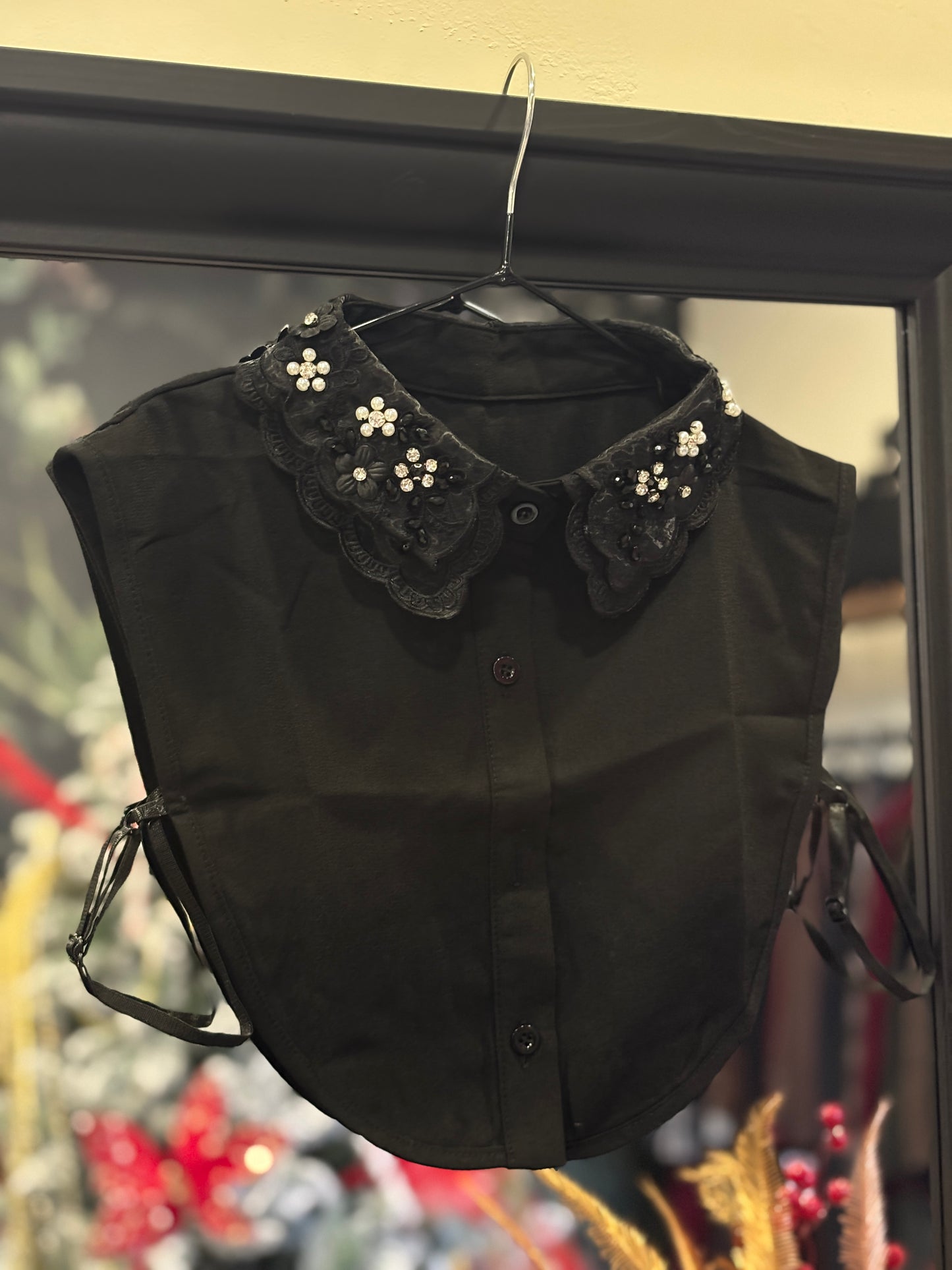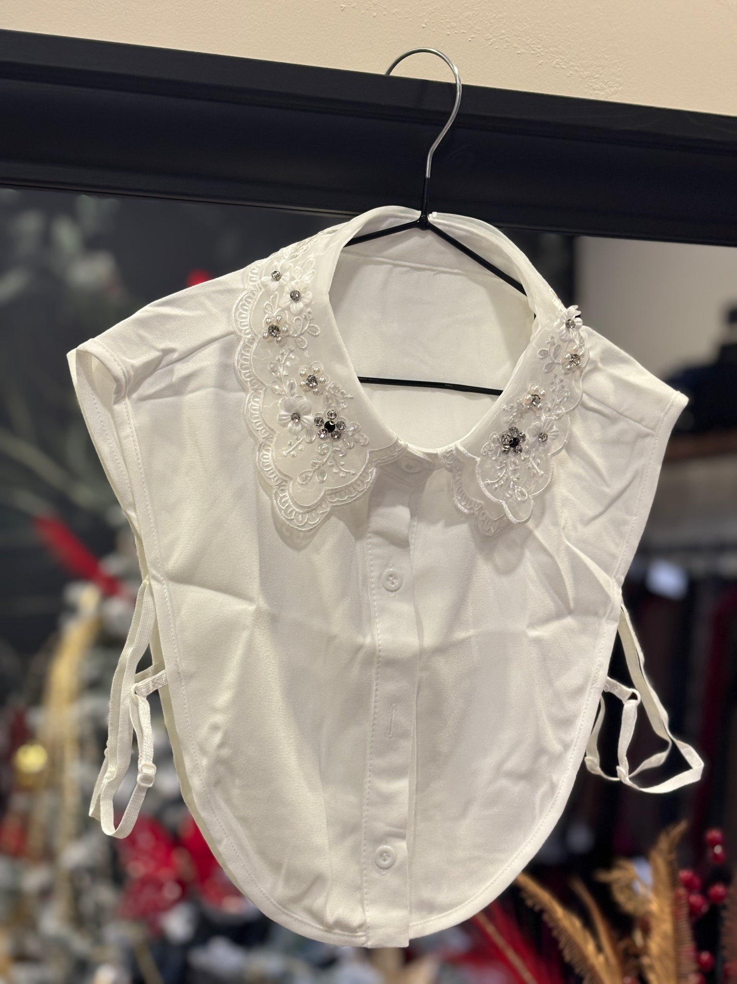 Aggiungi un tocco di eleganza ai tuoi outfit con questo raffinato colletto in tessuto realizzato con una linea pulita e femminile, presenta una lavorazione ricamata arricchita con perline e dettagli luminosi perfetta per valorizzare maglioni, abiti o t-shirt basic. Il design comprende una chiusura frontale a bottoni e fasce laterali regolabili per una vestibilità stabile e confortevole. Ideale per creare un effetto camicia senza aggiungere volume, è l’accessorio perfetto per look chic, formali e cerimonie.