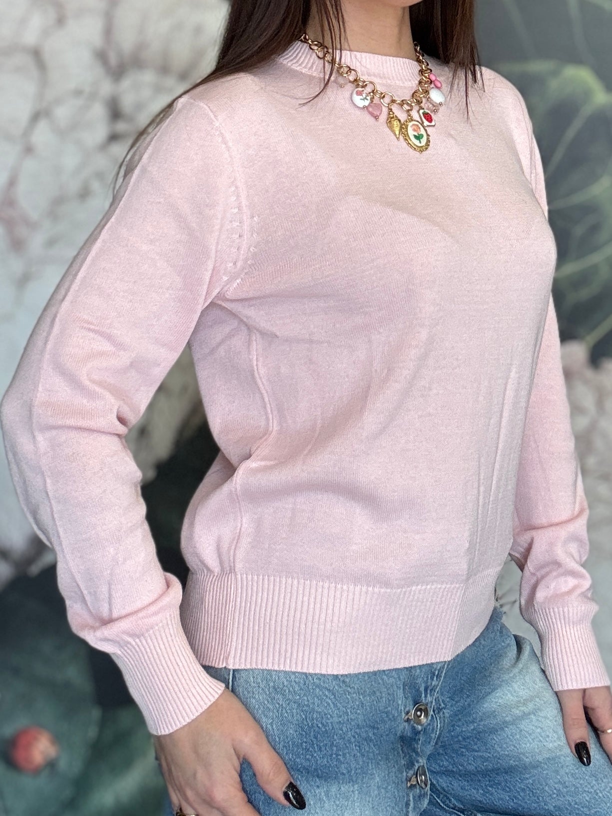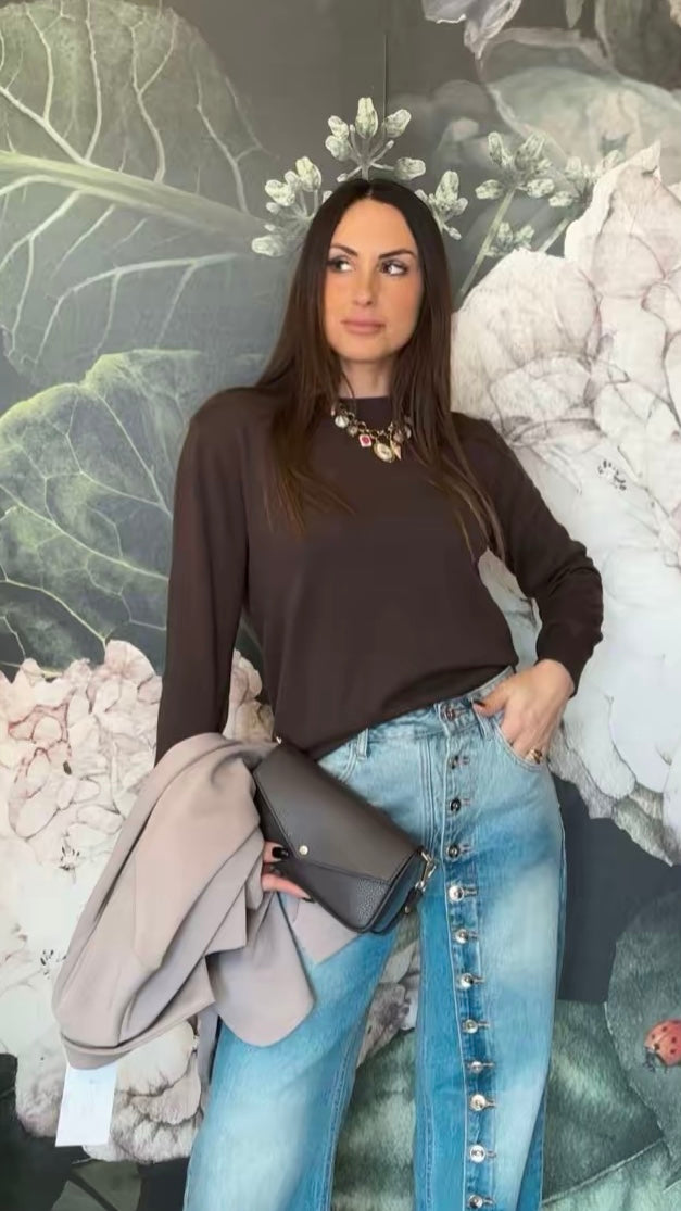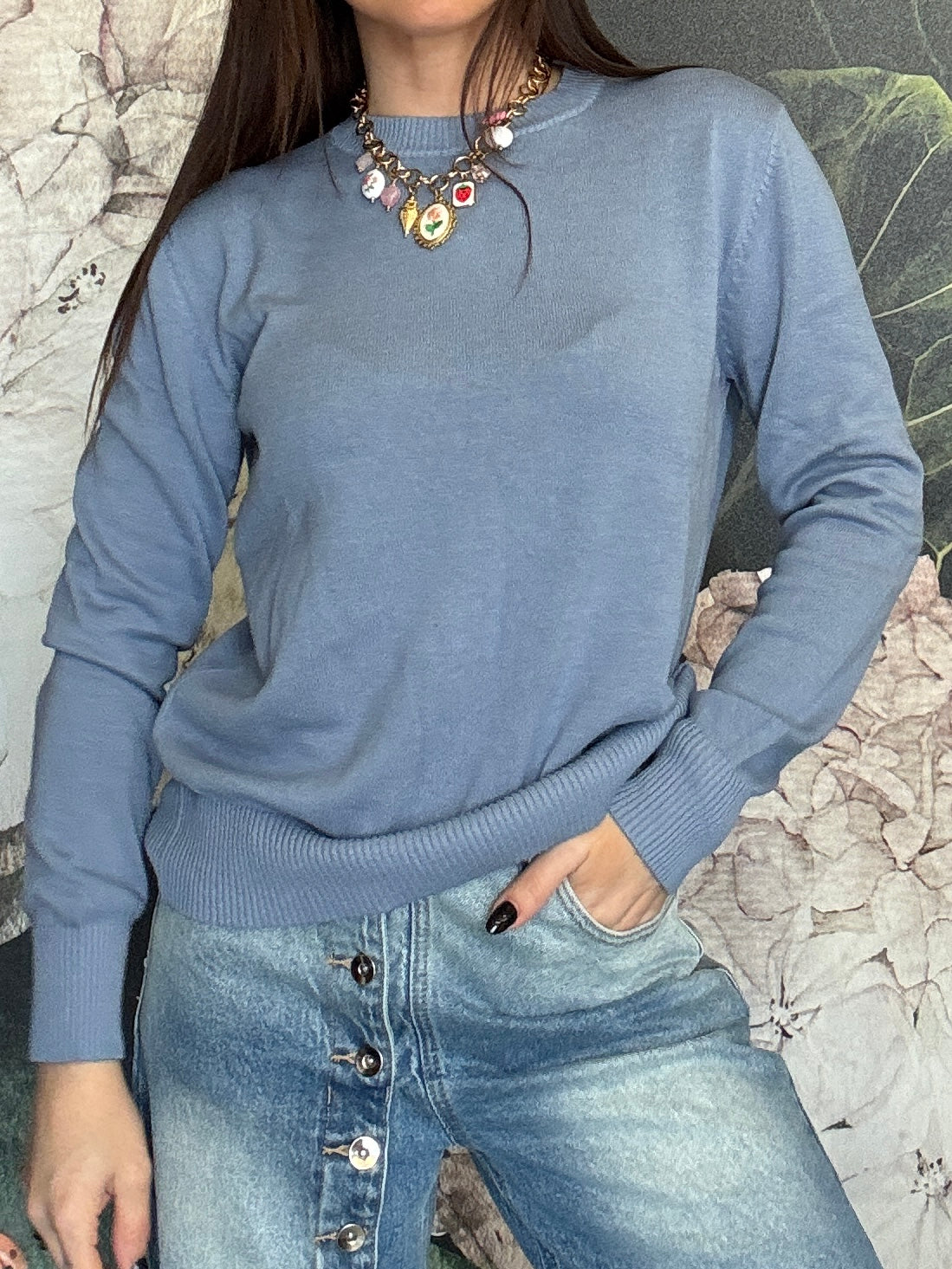 Maglioncino a girocollo, dal taglio classico, vestibilità regolare. Ideale per chi ama il cotone e la comodità.