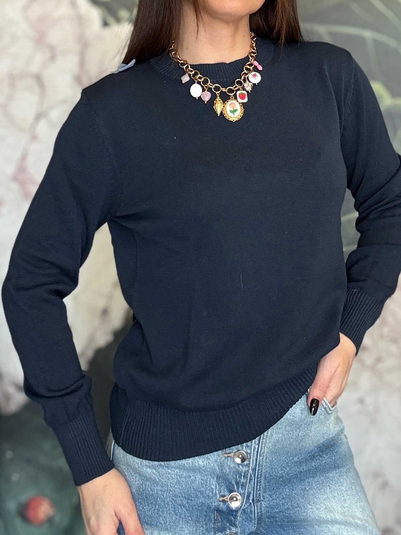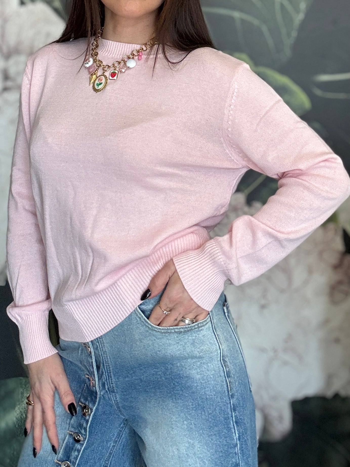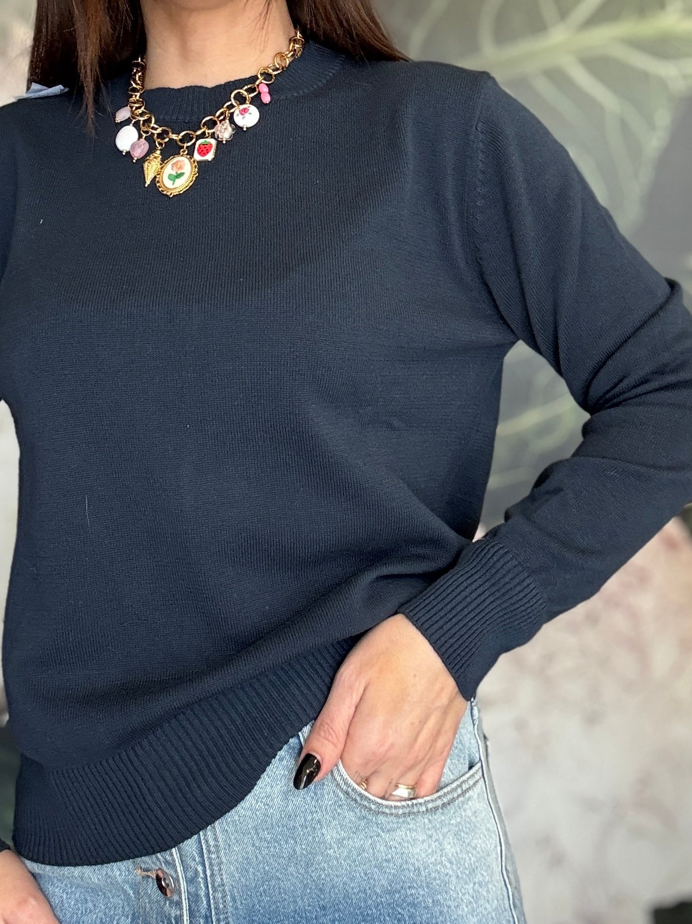 Maglioncino a girocollo, dal taglio classico, vestibilità regolare. Ideale per chi ama il cotone e la comodità.