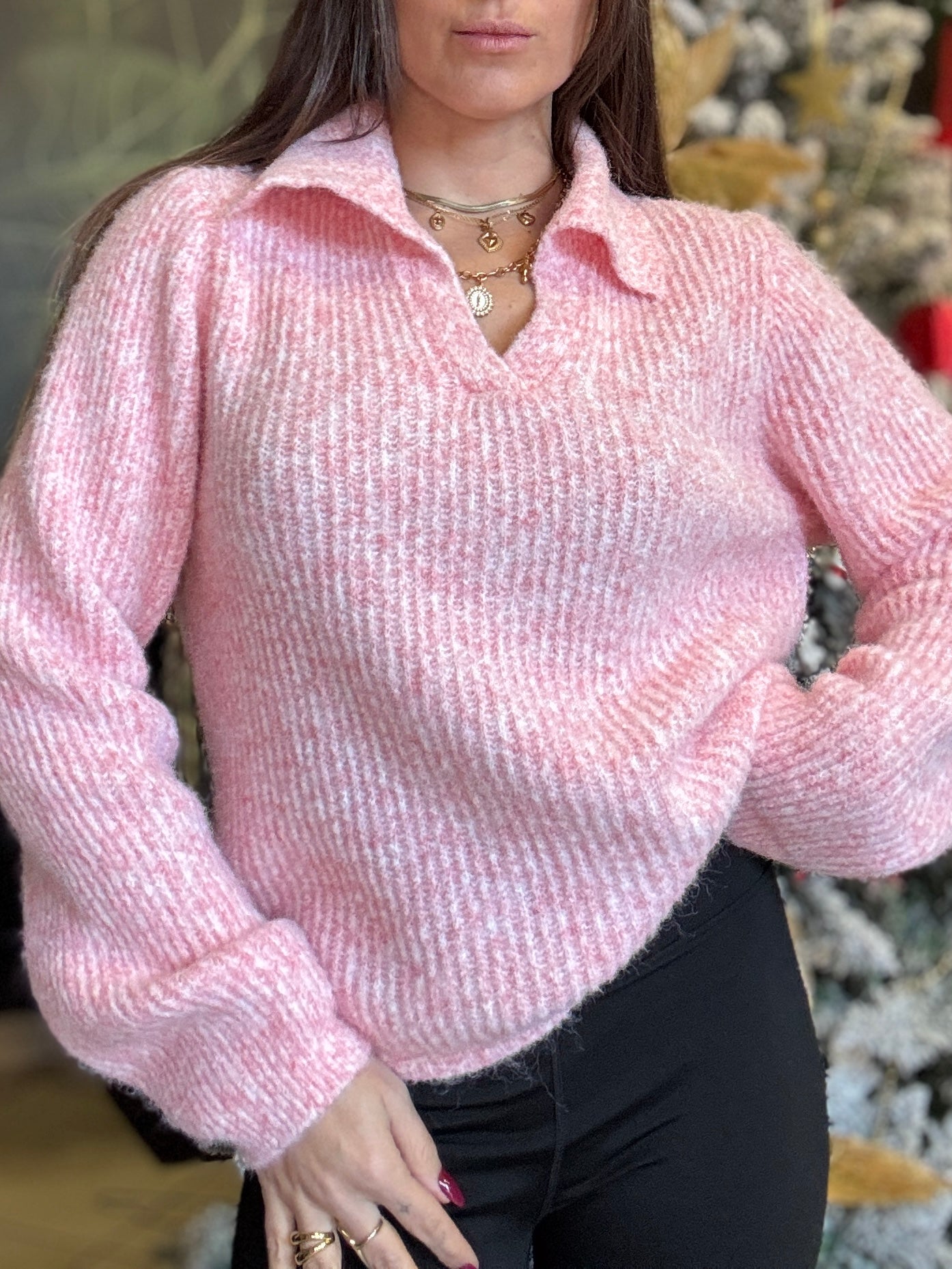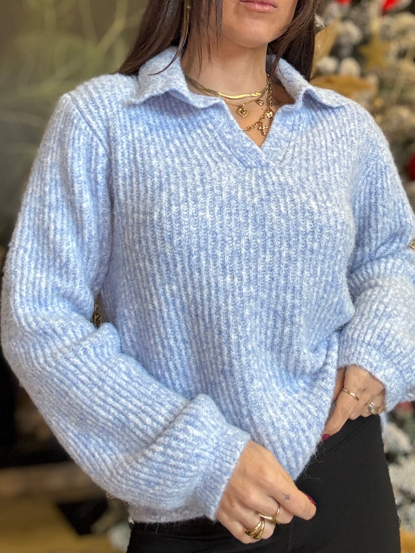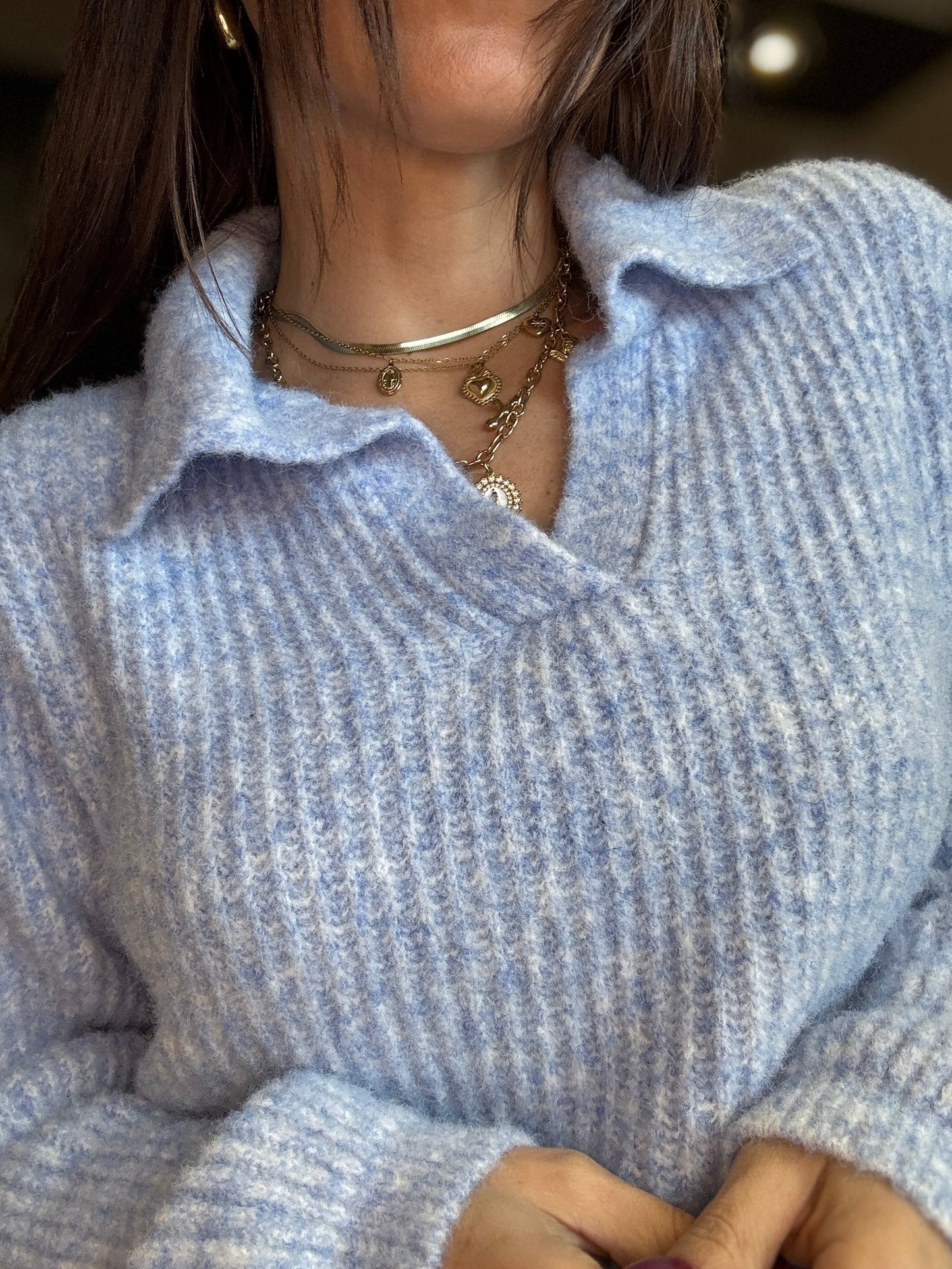 Maglioncino in filato morbido caratterizzato da una texture soffice e avvolgente con collo a polo che dona un tocco raffinato e femminile. Il modello presenta una linea leggermente oversize con spalle morbide e vestibilità confortevole. Un capo caldo e versatile, perfetto per la stagione fredda e per chi ama uno stile semplice ma elegante.