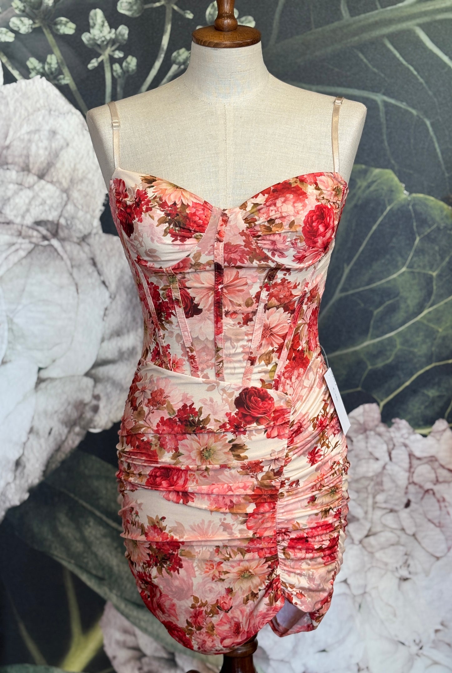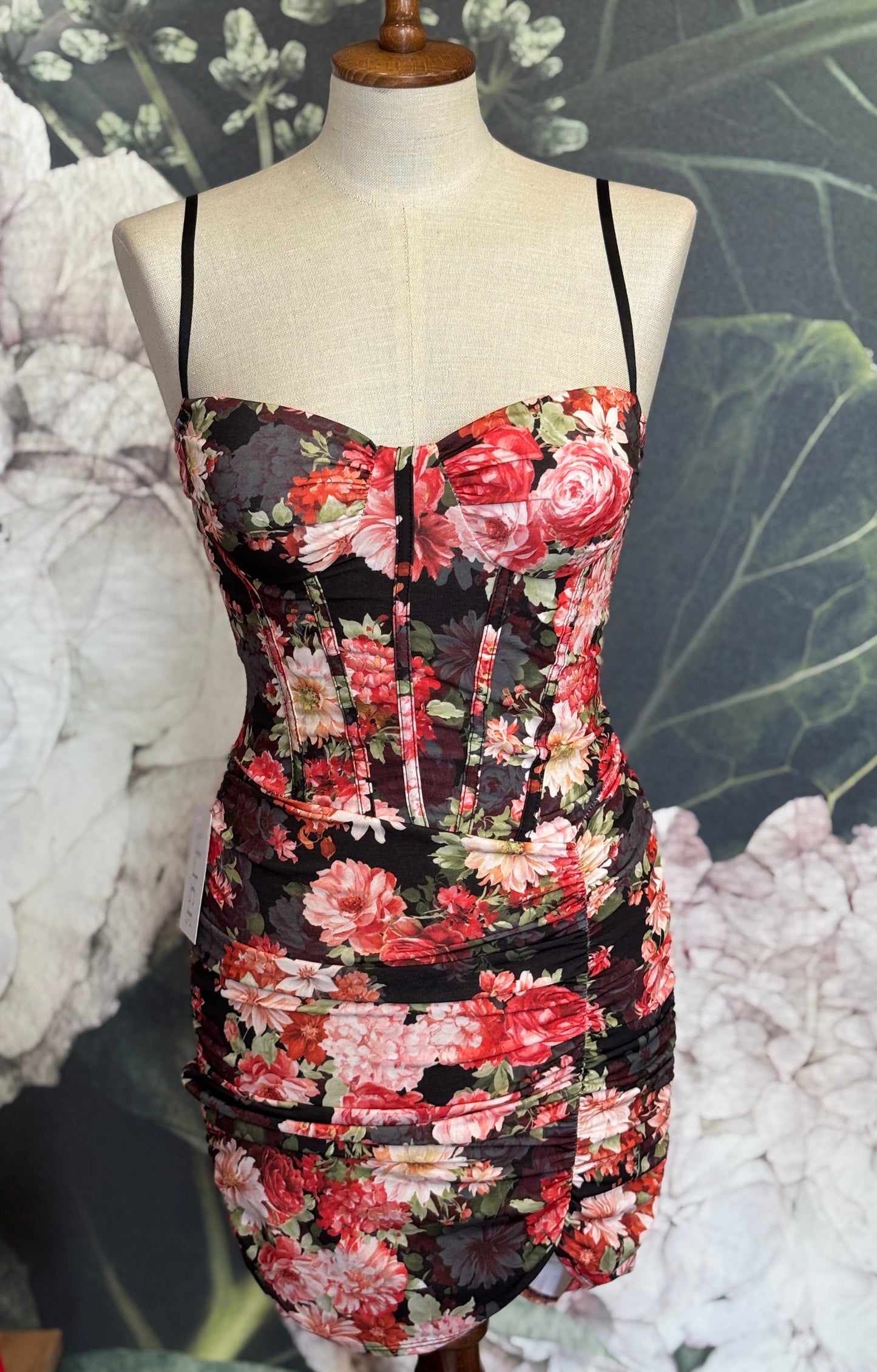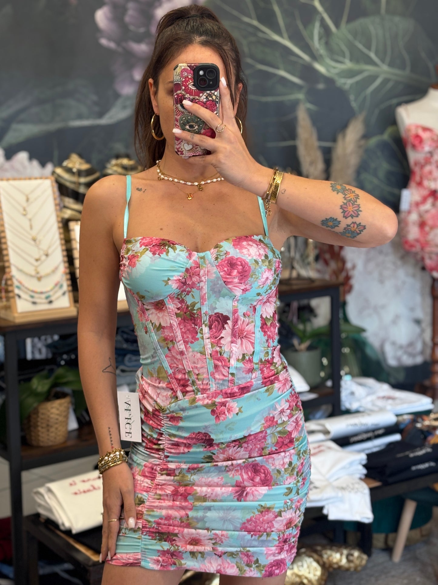 Prezzo normale €19,50Abito a tubino con vestibilità aderente, scollo a cuore con coppa preformata e bustino con stecche non rigide stile corsetto. Drappeggi laterali, drappeggio nella parte frontale e sul retro. Spalline regolabili.