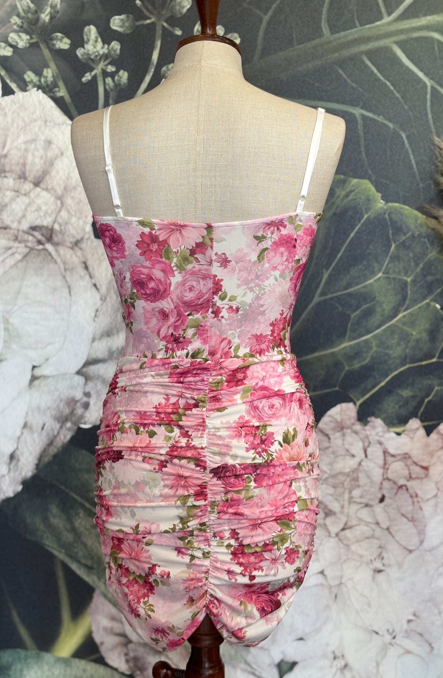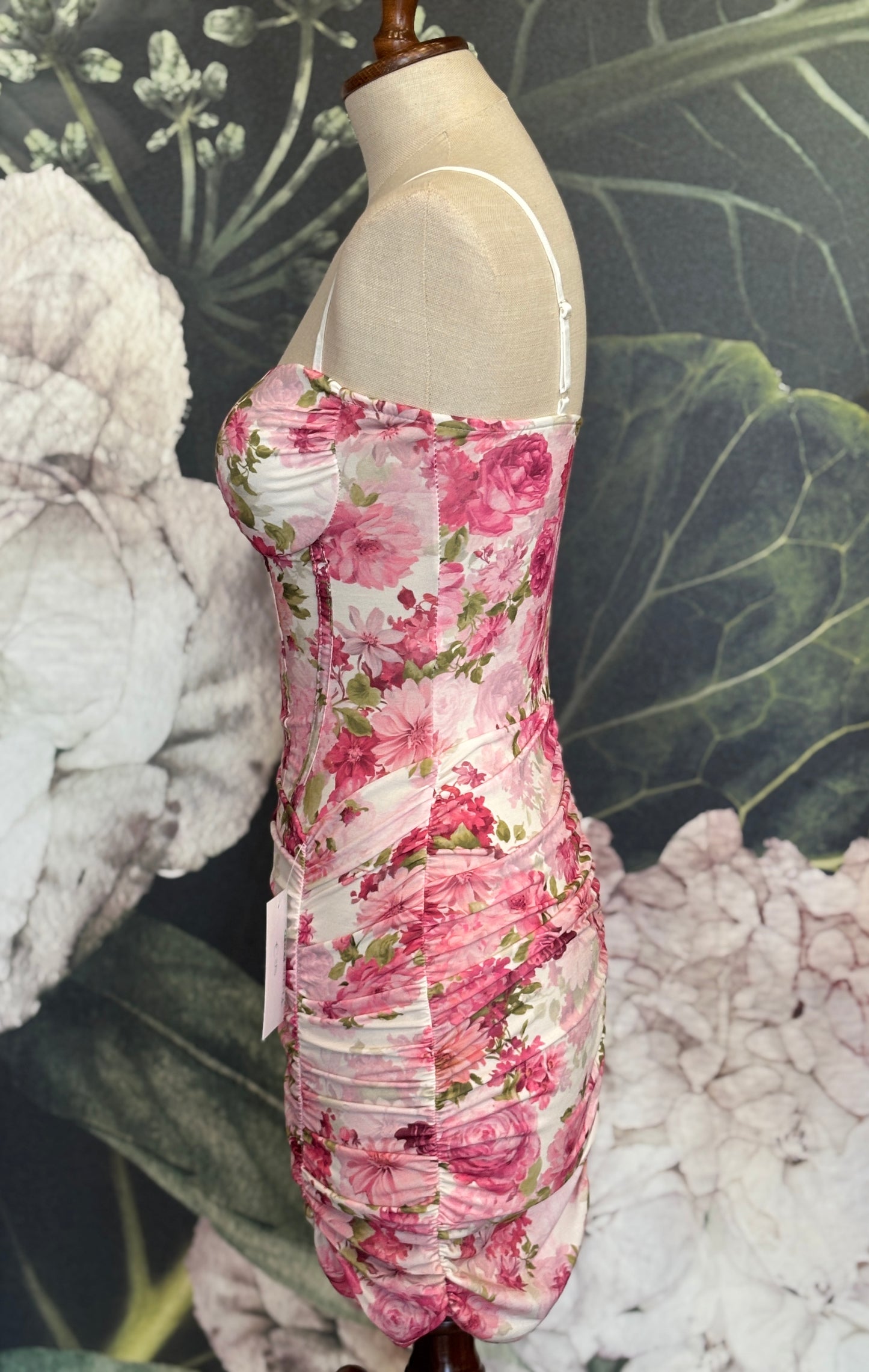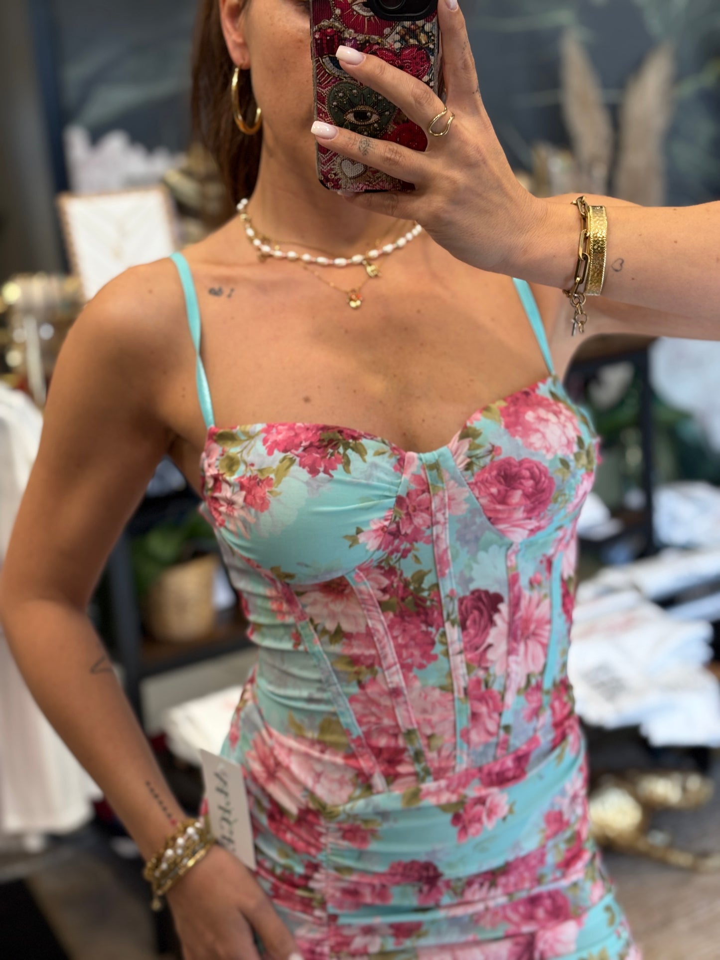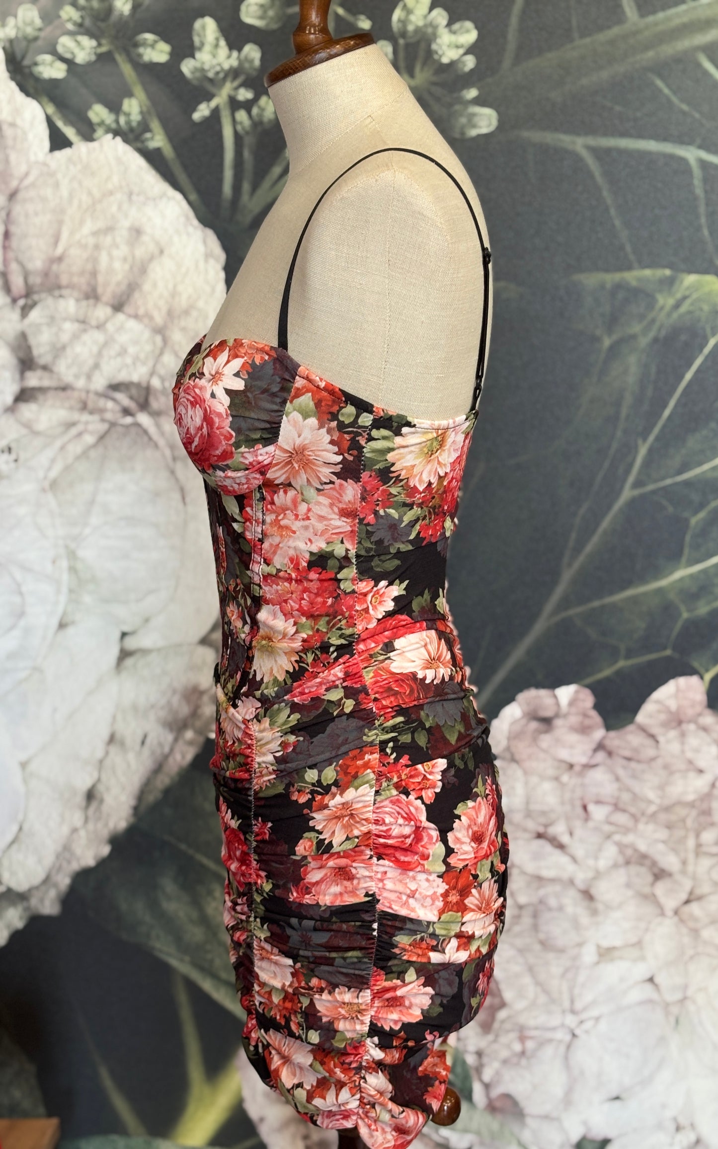 Prezzo normale €19,50Abito a tubino con vestibilità aderente, scollo a cuore con coppa preformata e bustino con stecche non rigide stile corsetto. Drappeggi laterali, drappeggio nella parte frontale e sul retro. Spalline regolabili.